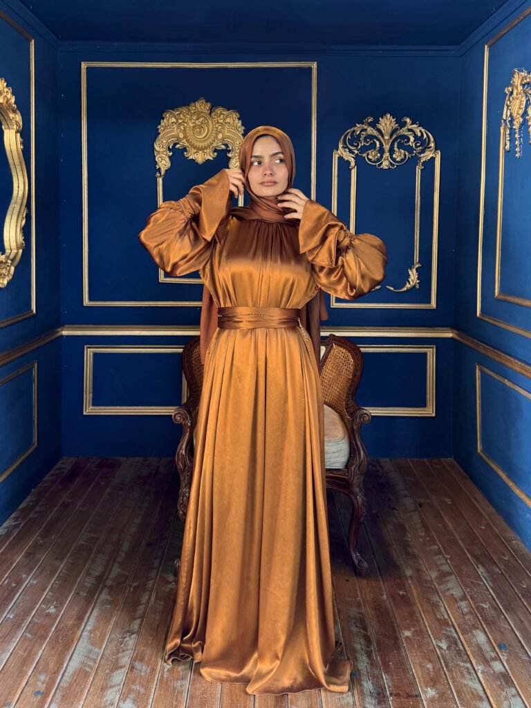 فستان سواريه، عبارة عن تلت قطع: فستان بكم، حزام منفصل، و حرملة اكستنشن