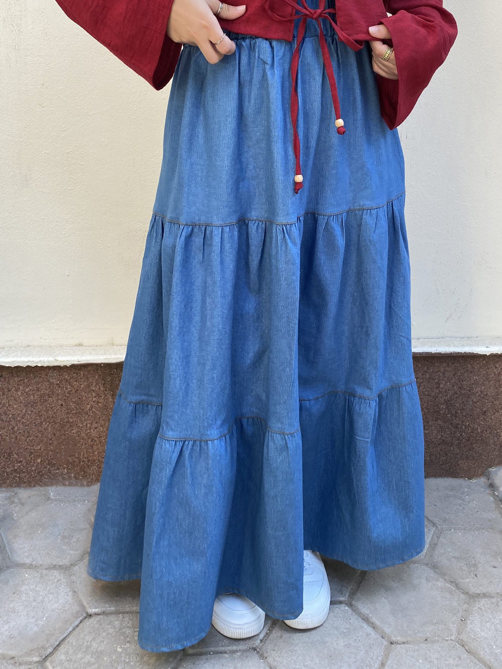 & Free Shippingجيبة جينز أدوار، خامتها مناسبة للصيف و الشتا و بتخلي اي طقم كاجوال و مريح💖